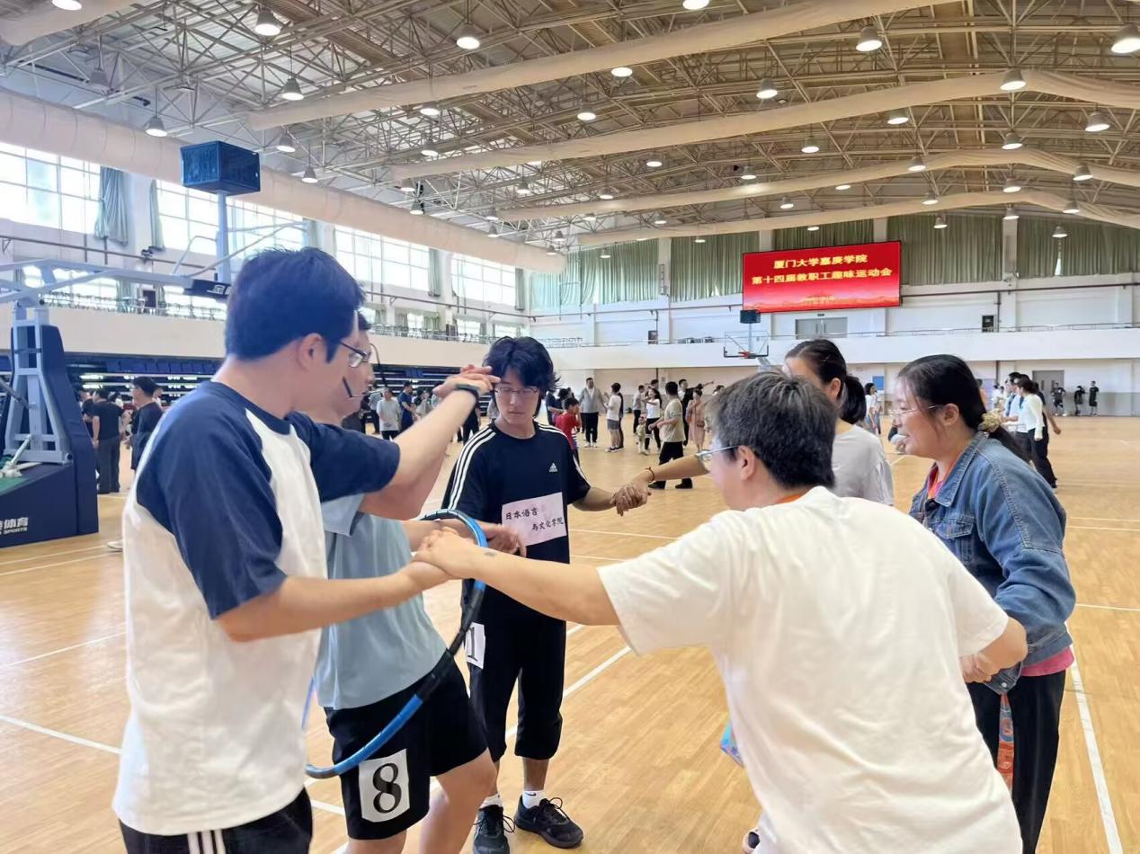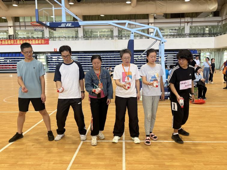 除了紧张激烈的竞技项目,教职工趣味运动会更是充满欢声笑语,成为本届运动会的一大亮点。在我院工会主席赵天宁老师的组织下,赵天宁、邹乃馨、周恒恒、唐文婧、西村秀树、中井隆斗六位老师合力报名了“众志成城”“齐心协力”“双剑合璧”“心有灵犀”四大趣味项目,不仅考验团队协作,更让老师们在轻松愉快的氛围中释放压力、增进情谊。