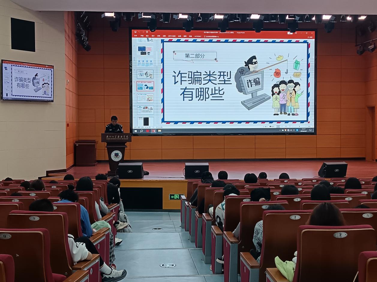 田雷刚警官围绕校园防诈骗、反诈骗主题,结合近期校园真实典型案例,细致讲解刷单诈骗、冒充熟人借钱、虚假票务诈骗、网络交友诱导投资、屏幕共享诈骗等高发诈骗手段。