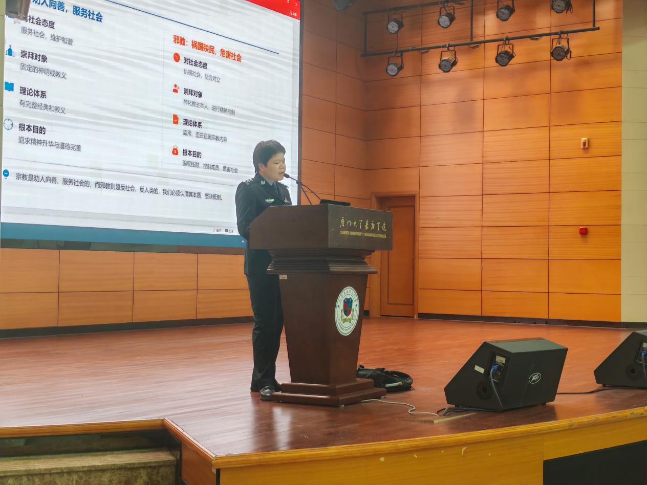 大会伊始,李静警官以 “坚守校园净土、抵制宗教渗透” 为主题开展安全教育宣讲。